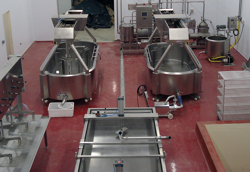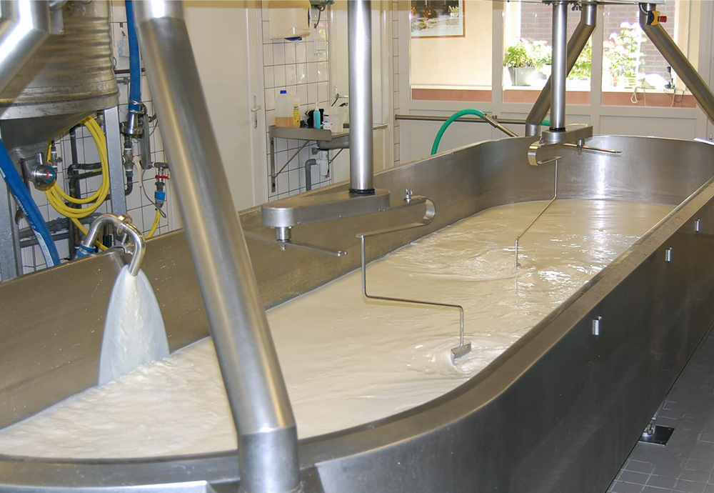 Ambachtelijke bereiding van wrongel in een open langwerpige tobbe. De driewandige RVS kaasbak heeft een hoogwaardige, voedselveilige afwerking en beschikt over de juiste temperatuurregeling om de beste wrongel van de wereld te produceren.