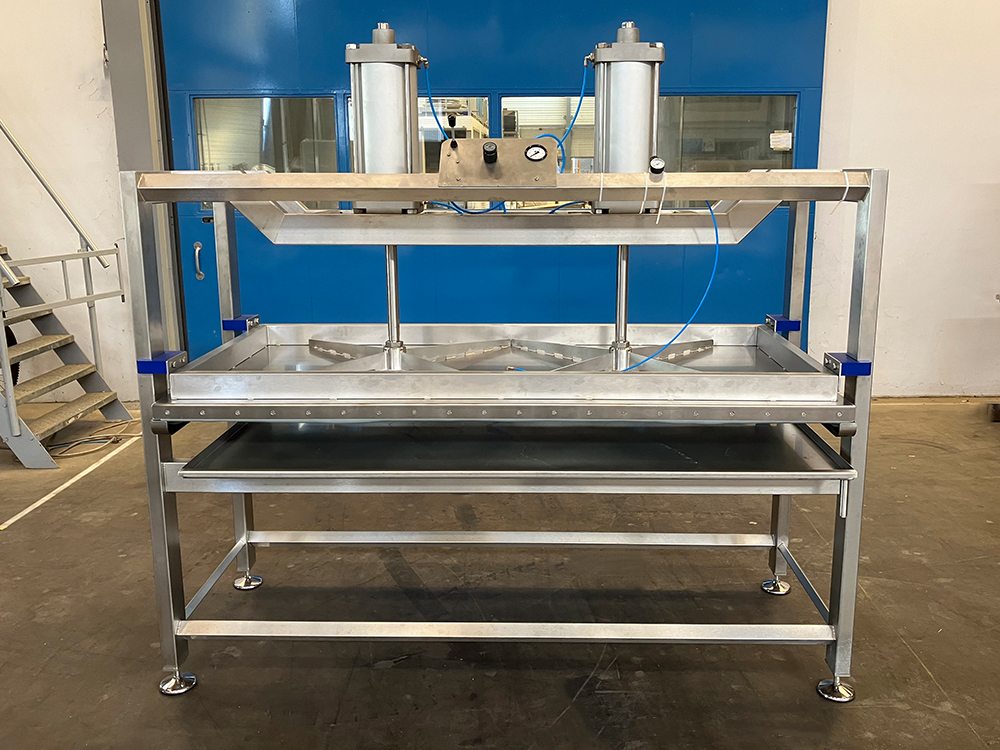 Door het opblaasbare matras onder de stempel wordt de ingestelde druk op de kaas evenredig verspreid. Hierdoor worden eventuele vullingsverschillen in de kaasvormen eenvoudig gecompenseerd en krijgen alle geperste kazen een goed gesloten korst.