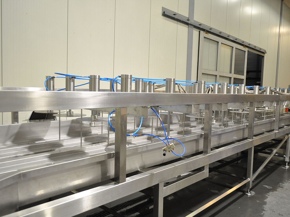Automatisch persen van grote hoeveelheden kazen. De kaasvormen worden aan de voorkant van de tunnelpers geladen. Door middel van een transportsysteem komt de kaasvorm onder een pneumatische cilinder terecht. Het persproces begint zodra de tunnelpers geladen is. Na het persen zal de kaasvorm naar de achterkant van de tunnelpers gevoerd worden.