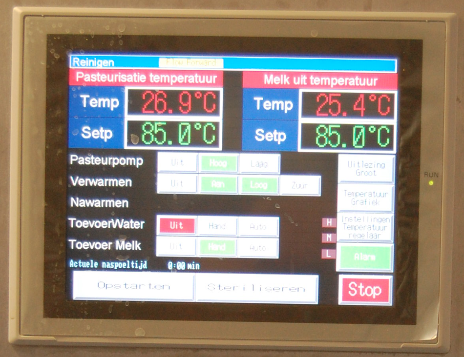 Helaas is er geen 1 op 1 alternatief voor dit scherm en hebben wij de keuze laten vallen op een type welke nagenoeg even groot is. Echter is er een iets groter inbouwgat nodig voor het nieuwe scherm. Bij noodzakelijke vervanging bij een storing, heeft de monteur extra tijd nodig om het gat op maat te maken voor het nieuwe scherm. Om de doorstroompasteur op dezelfde wijze te laten functioneren als met het huidige NS8 scherm zal de software/programmatuur ook aangepast moeten worden. Ondanks dat de programmatuur grotendeels het standaard is, zijn er vaak klant specifieke aanpassingen die ook in de nieuwe programmatuur moeten komen. Om er zeker van te zijn dat we bij een storing snel van dienst kunnen zijn, is het te adviseren dat wij alvast de software van uw pasteur aanpassen.